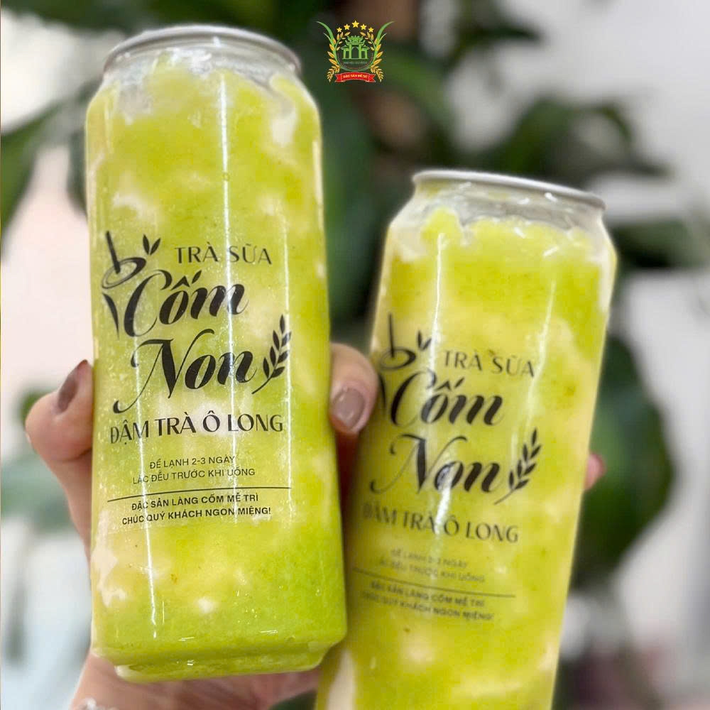 Trà sữa cốm của Cốm mộc Ngô Thức được đóng lon tiện lợi, thích hợp để thưởng thức trong những buổi ăn vặt, khi nghỉ ngơi hoặc khi muốn đổi vị với một thức uống mang đậm hương cốm Hà Nội.